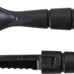 -Features a spoon/fork combination at the base & a serrated knife internally