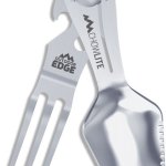 -The folding design swings open & locks securely, revealing a full size fork & spoon w/ a serrated food
